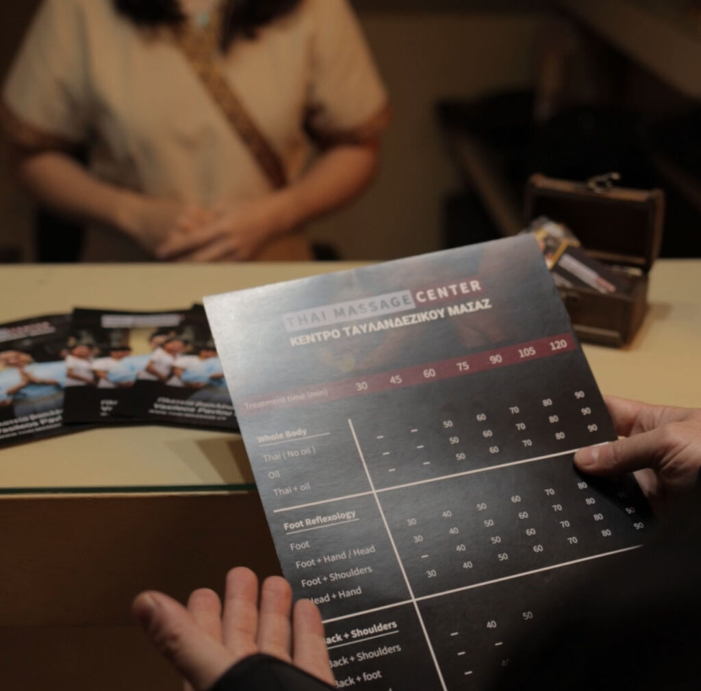 Ταϊλανδέζικο μασάζ (ένα είδος μασάζ σε βάθος ιστών σε όλο το σώμα του ασθενούς), μασάζ με λάδι, ρεφλεξολογία, μασάζ ώμων και πλάτης και άλλα.